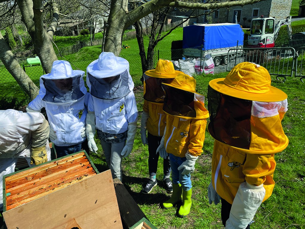 Depuis 4 ans, l’école de Borlon met en place un projet «De la terre à l’assiette» qui encourage les enfants à mieux comprendre et à agir sur la manière de produire des aliments. En plus de gérer notre serre et notre potager en permaculture avec l’aide de Monsieur Aaron de l’ASBL Rêve de Terre, nos élèves se sont transformés en apprentis apiculteurs. En effet, après l’installation d’une ruche en classe (apiscope) qui nous permet d’observer les abeilles, nous avons récupéré des essaims pour les installer dans des ruches de notre jardin.