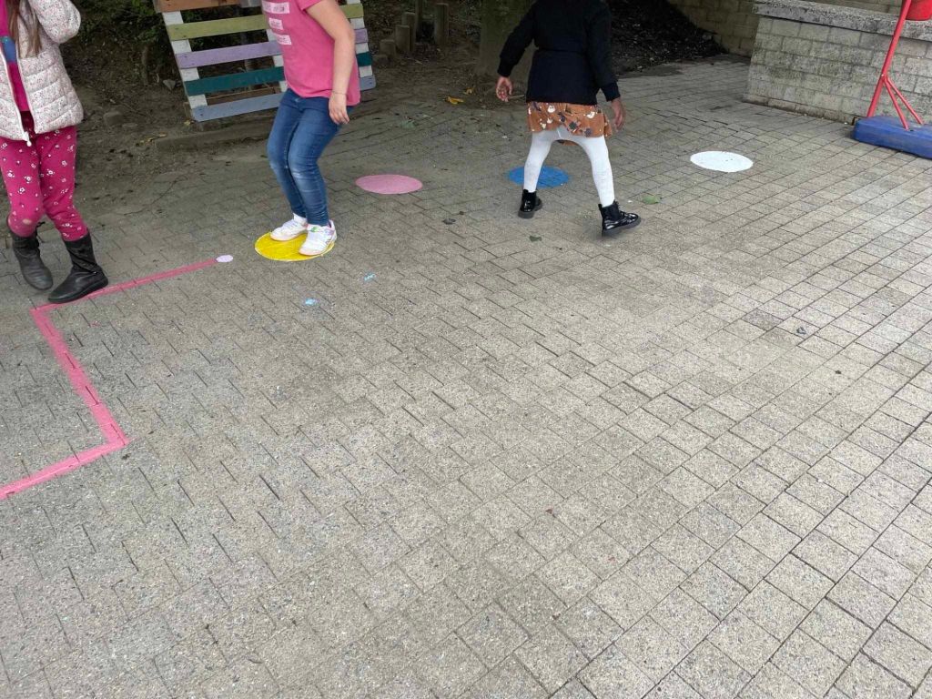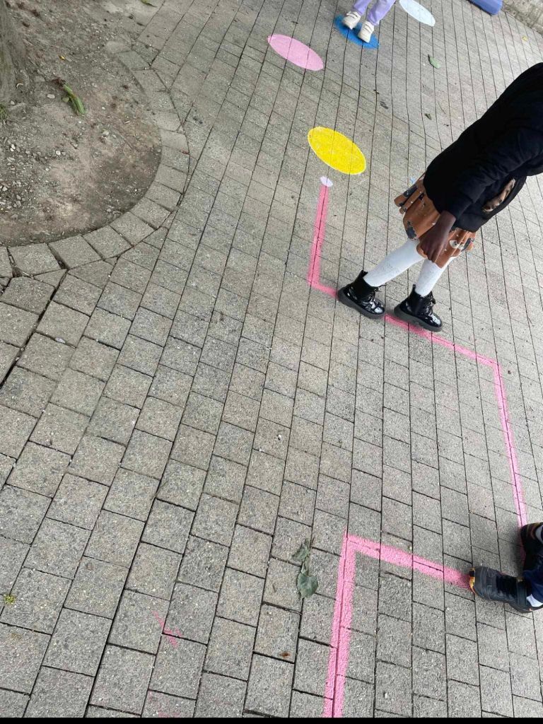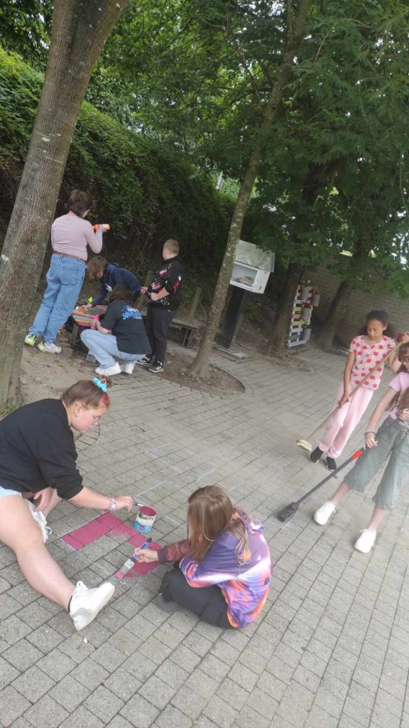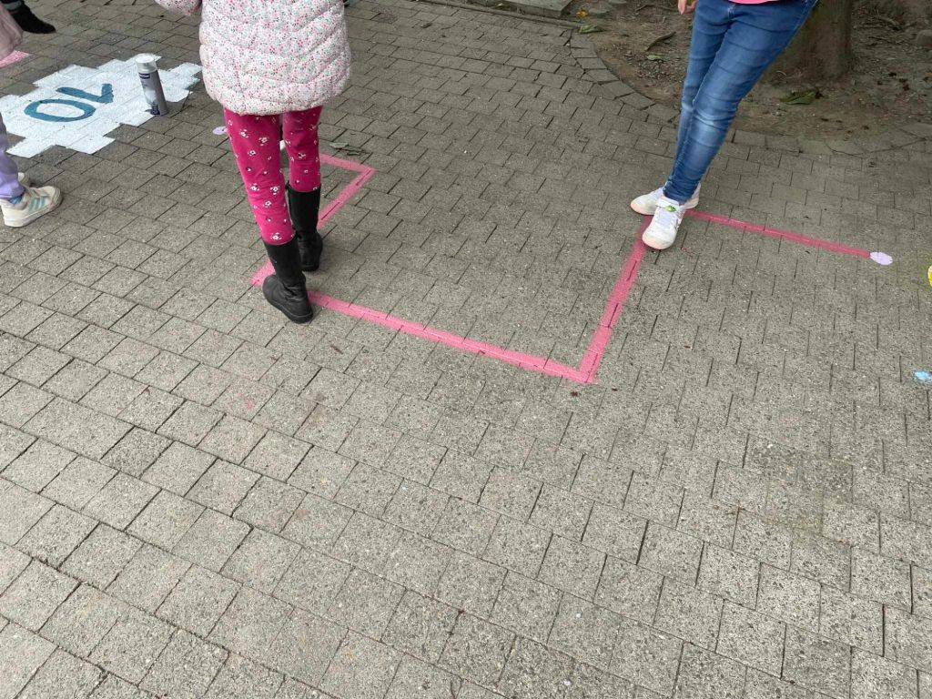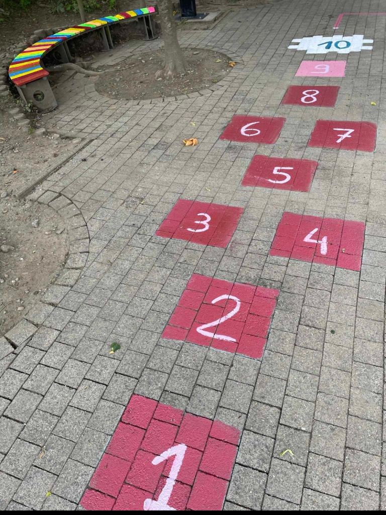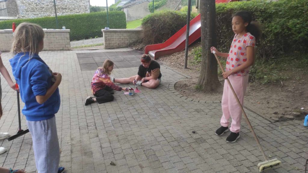 Les enfants ont eu comme projet de peindre la cour de récréation ! Un petit jeu récréatif sur le sol…