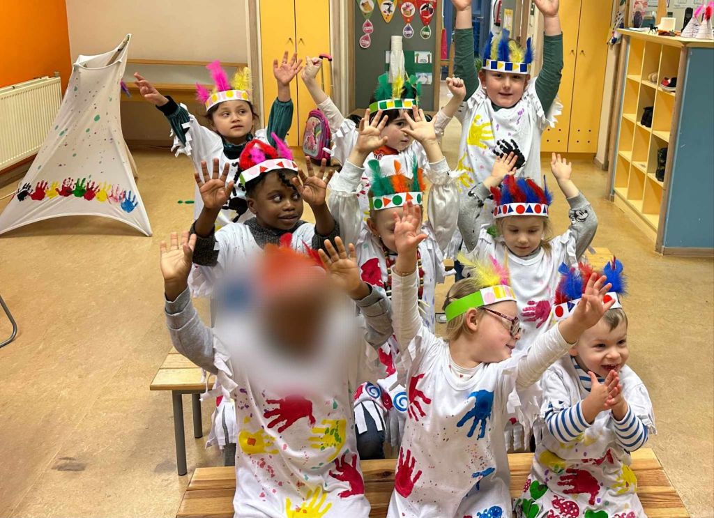 A l’occasion du carnaval, les enfants ont créé leur propre costume d’indien. Ils ont ainsi découvert leur mode de vie et leurs caractéristiques physiques.