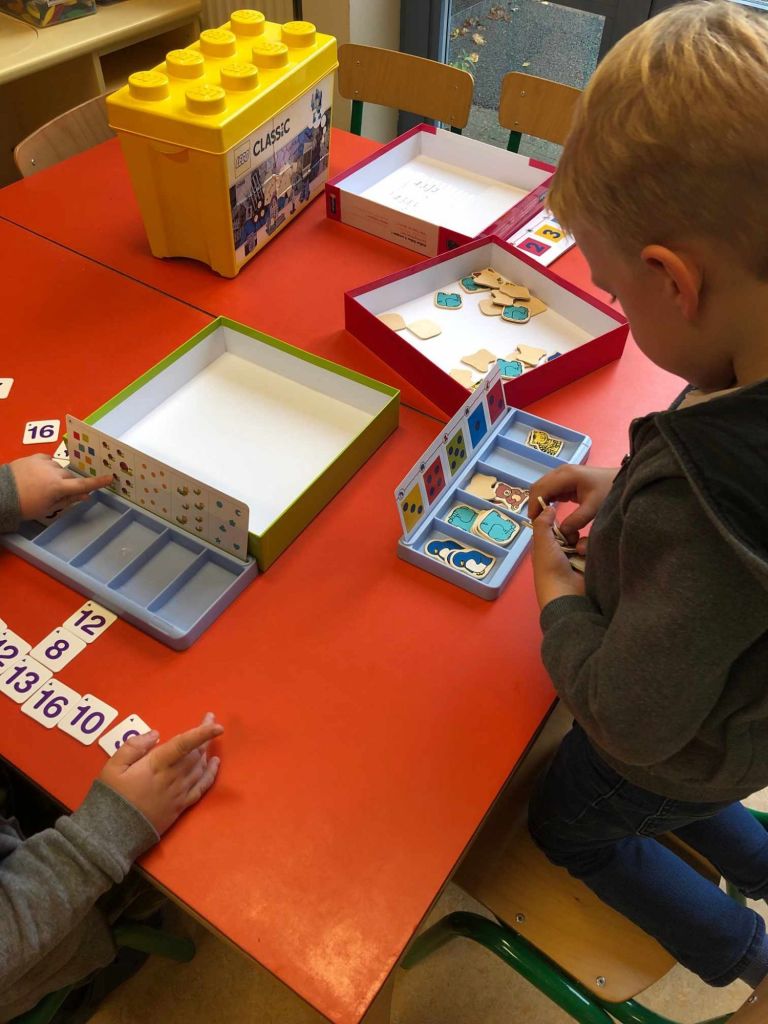 Petit zoom chez les petits. Dans les photos ci-dessous, nous vous présentons quelques ateliers autonomes. Ceux-ci sont adaptés en fonctions du rythme de chacun. Chaque enfant a le droit de choisir une activité qui développera chez lui les attendus du tronc commun.