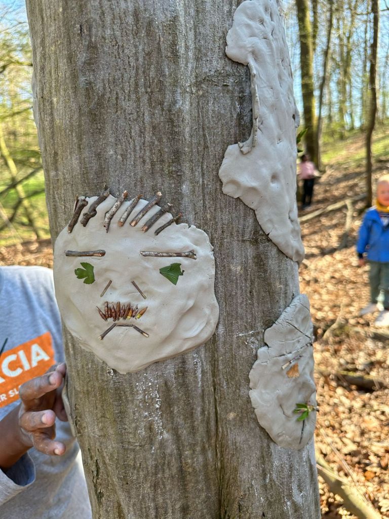 🌳 Artistique avec les mains, des arbres, de l’argile et des éléments naturels récoltés un peu partout.