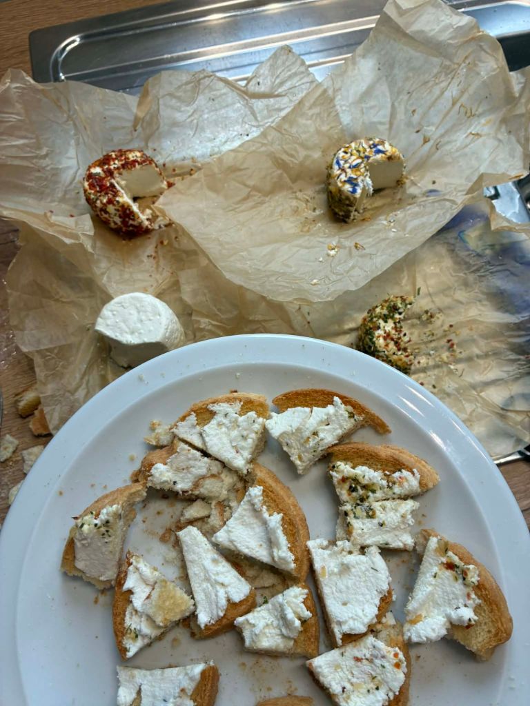 Nous avons également découvert la fabrication du fromage de chèvre. Et pour notre deuxième plus grand bonheur, une dégustation à l’école 🤩
